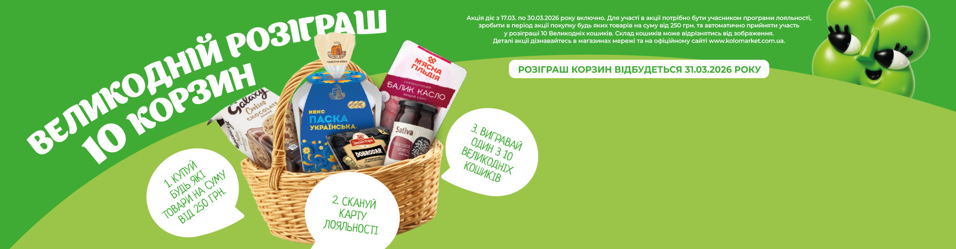 16.04.2025 року серед всіх Учасників, визначається отримувач 1 (один) Великоднього кошика.